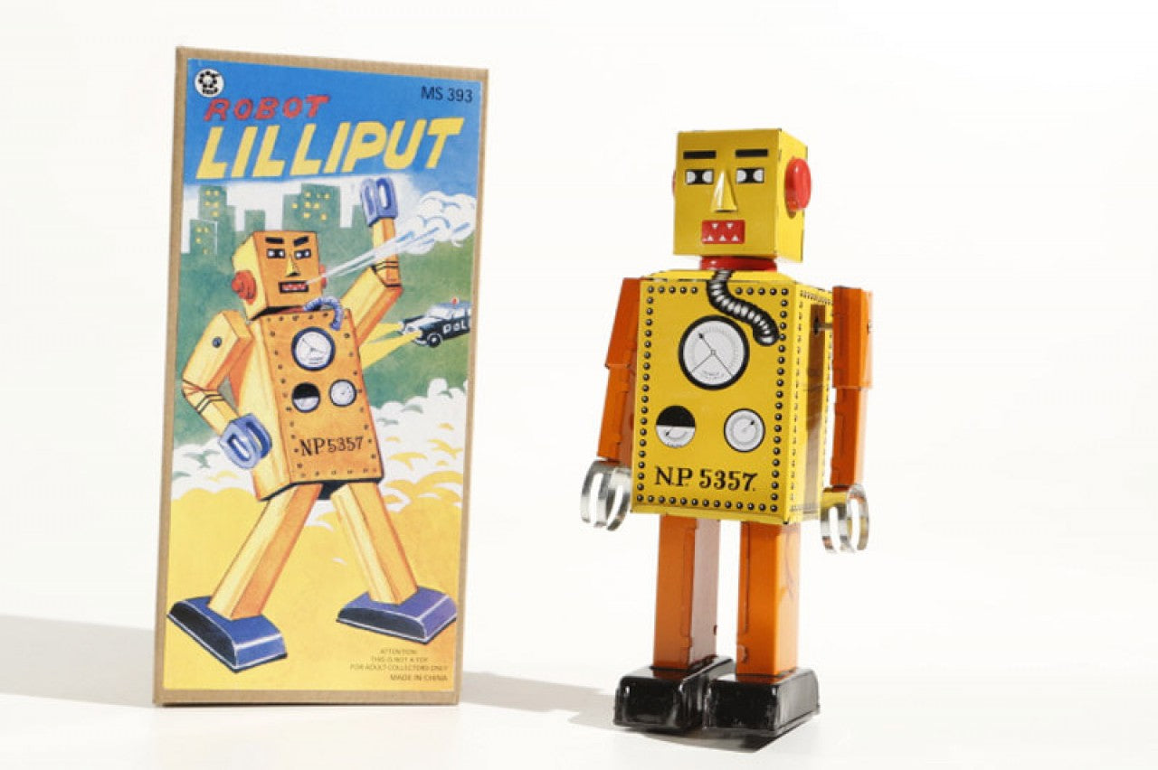 Robot Lilliput groot, geel, 22 cm, met start-stopfunctie, Gemaakt in China