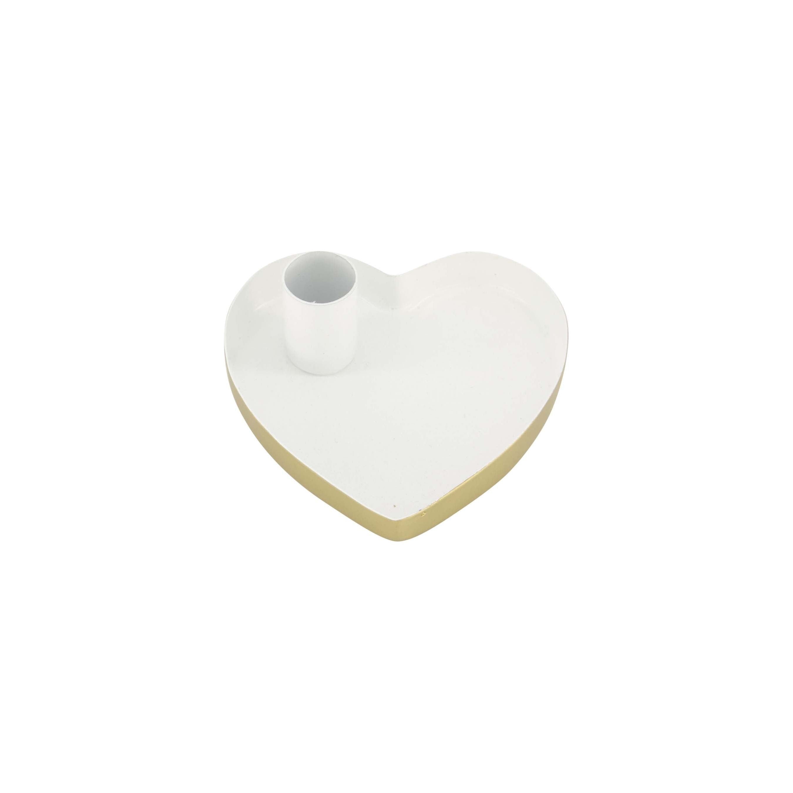 Kandelaar - metaal hart - wit/goud