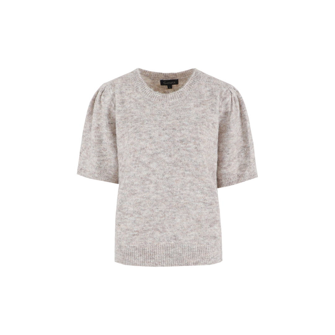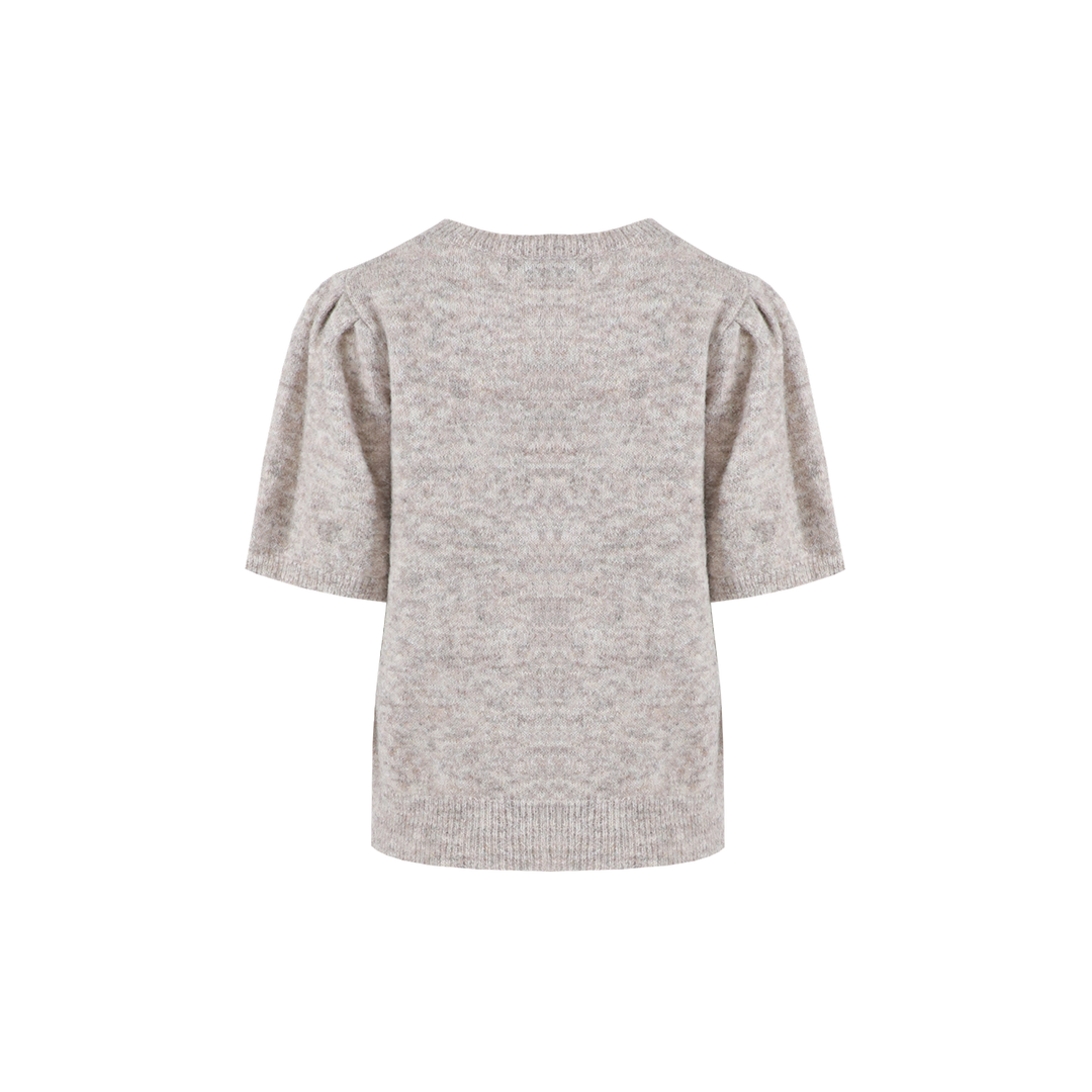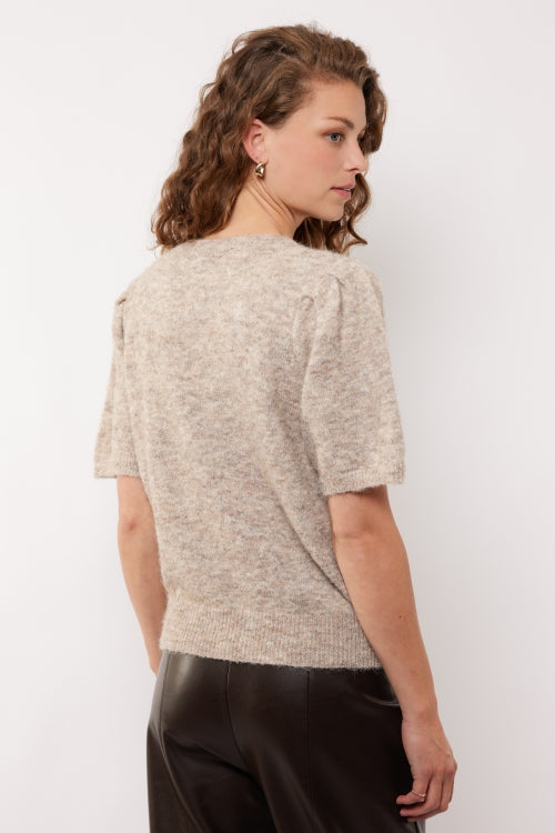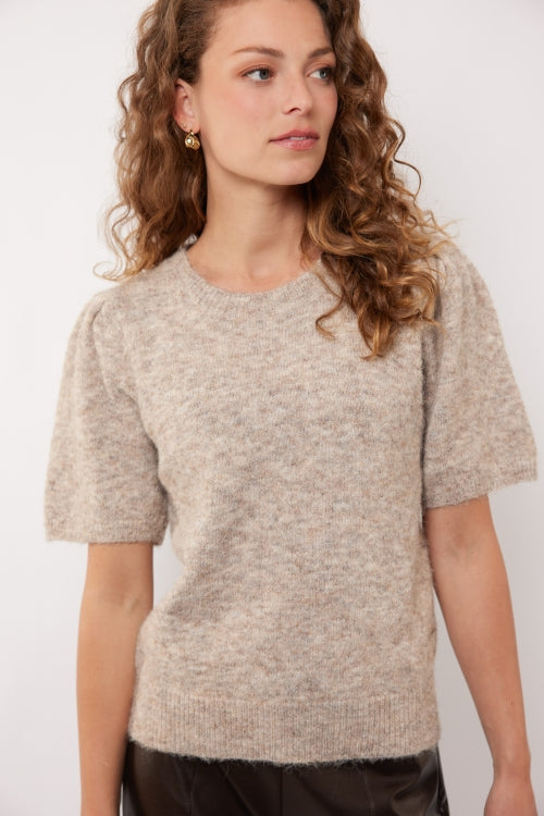 De Octavia top combineert een comfortabele knit met een vrouwelijke, elegante uitstraling. De korte mouwen hebben een subtiel pofeffect dat zorgt voor extra flair, terwijl de ronde hals en rechte pasvorm de top veelzijdig maken voor elke gelegenheid.