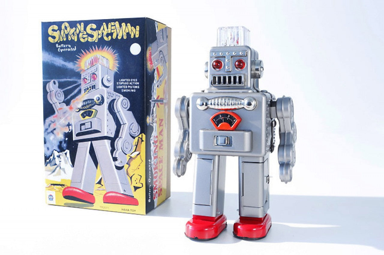 Rokende robot met batterij, 30 cm, zilverkleurig, met licht en rook, Gemaakt in China