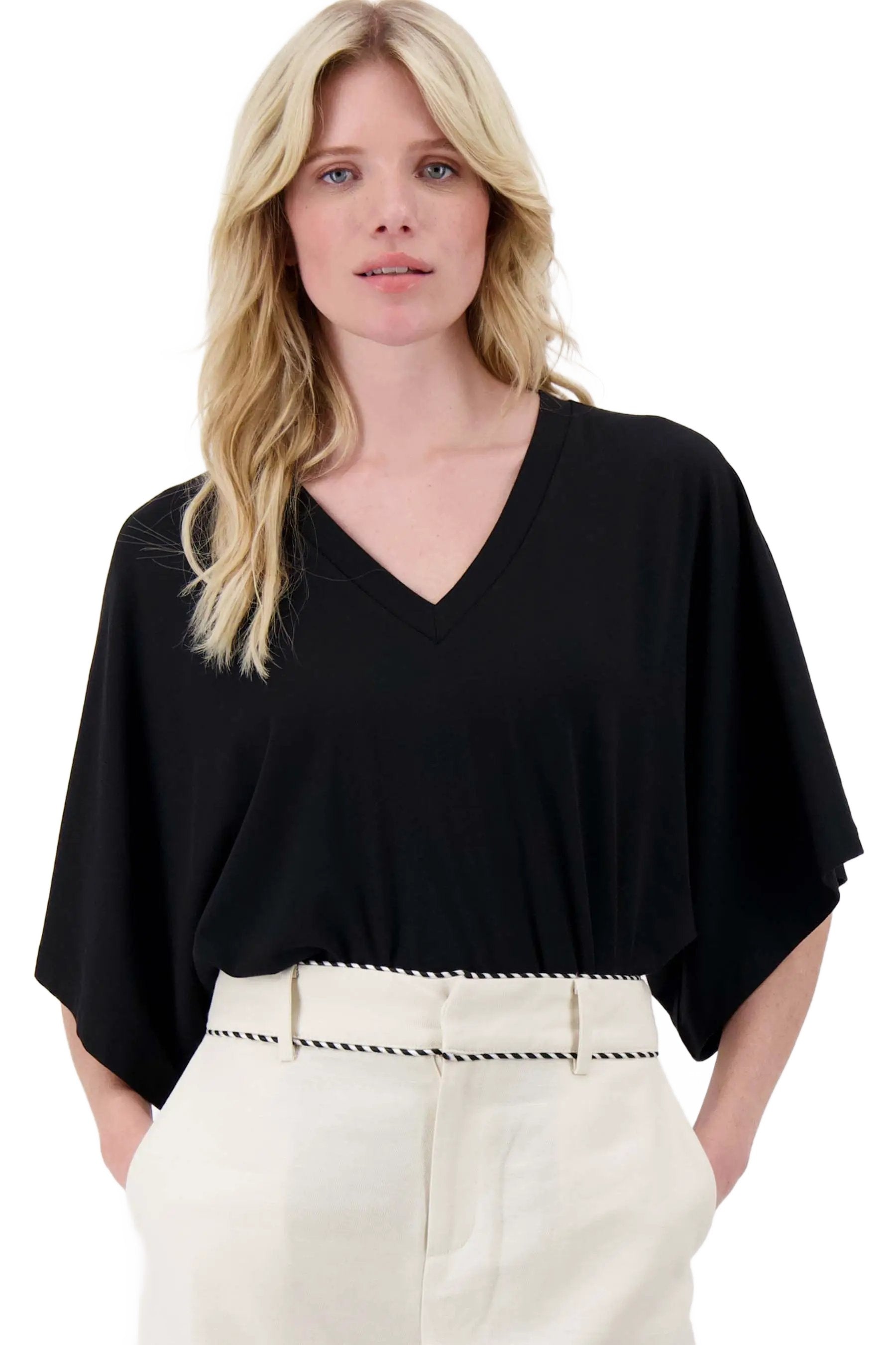 T-shirt wijde mouw met embroidery - Black