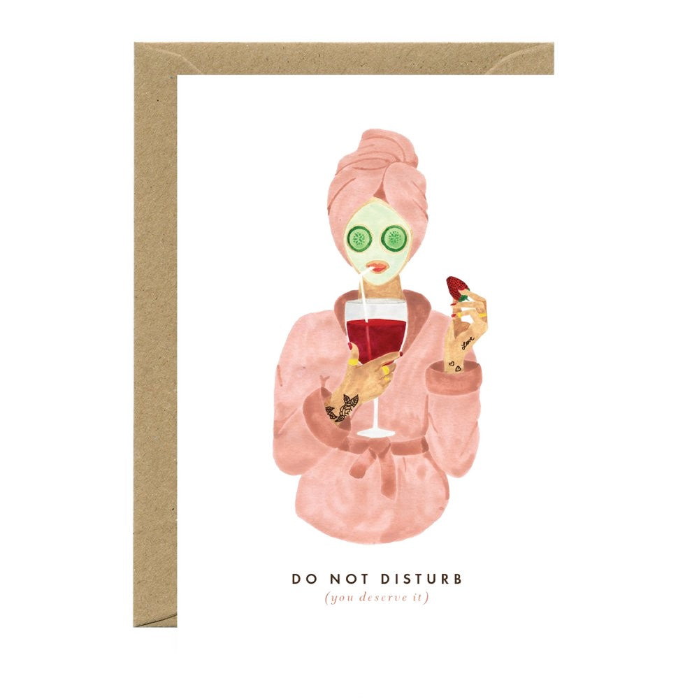 Op de voorkant prijkt de duidelijke boodschap Do Not Disturb, vergezeld door de subtitel (you deserve it), waardoor de kaart perfect is om iemand even een moment van rust te gunnen of jezelf te verwennen.